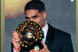 巴黎边卫阿什拉夫当选2025年非洲足球先生,拉莫斯社媒晒出阿什拉夫领奖的照片,配文:“祝贺你,我的兄弟,你是最棒的(Number 1)!”